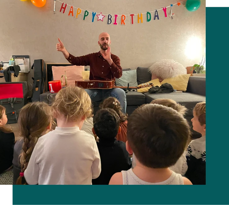 Vous cherchez une activité pour un anniversaire d’enfant ? Je propose une animation d’environ 50 minutes avec des moments de chansons participatives, de la découverte d’instruments, des jeux musicaux en mouvement ainsi qu’un petit instrument en cadeau à l’enfant qui a son anniversaire.